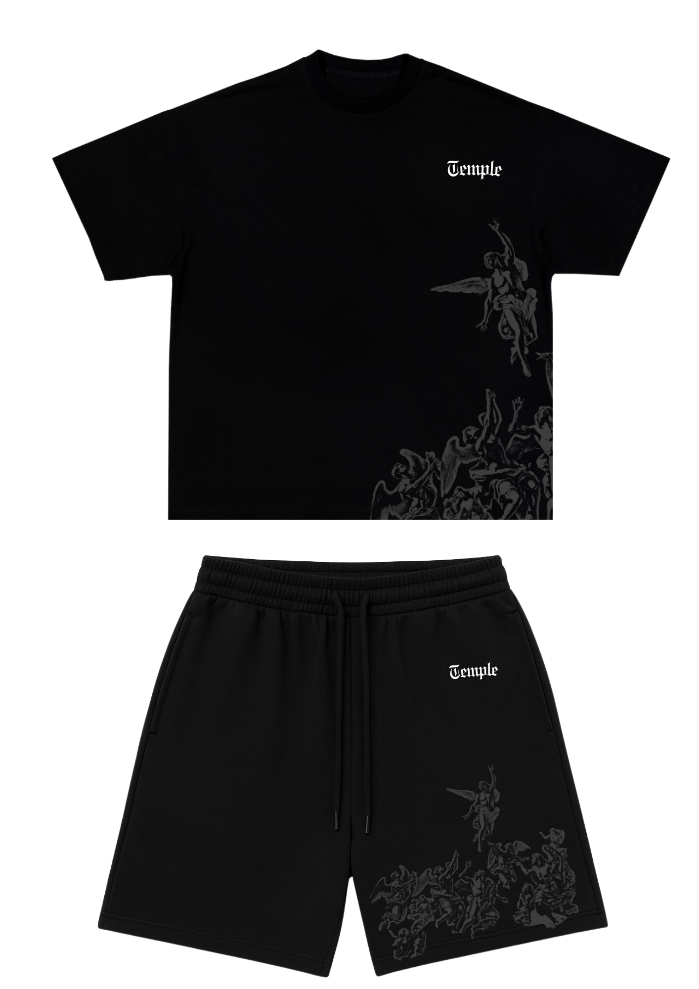 set oversize Temple composé d’un t-shirt et d’un short noir premium.